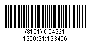 one using UCC/EAN-128 with message (8101)0 54321 1200(21)123456